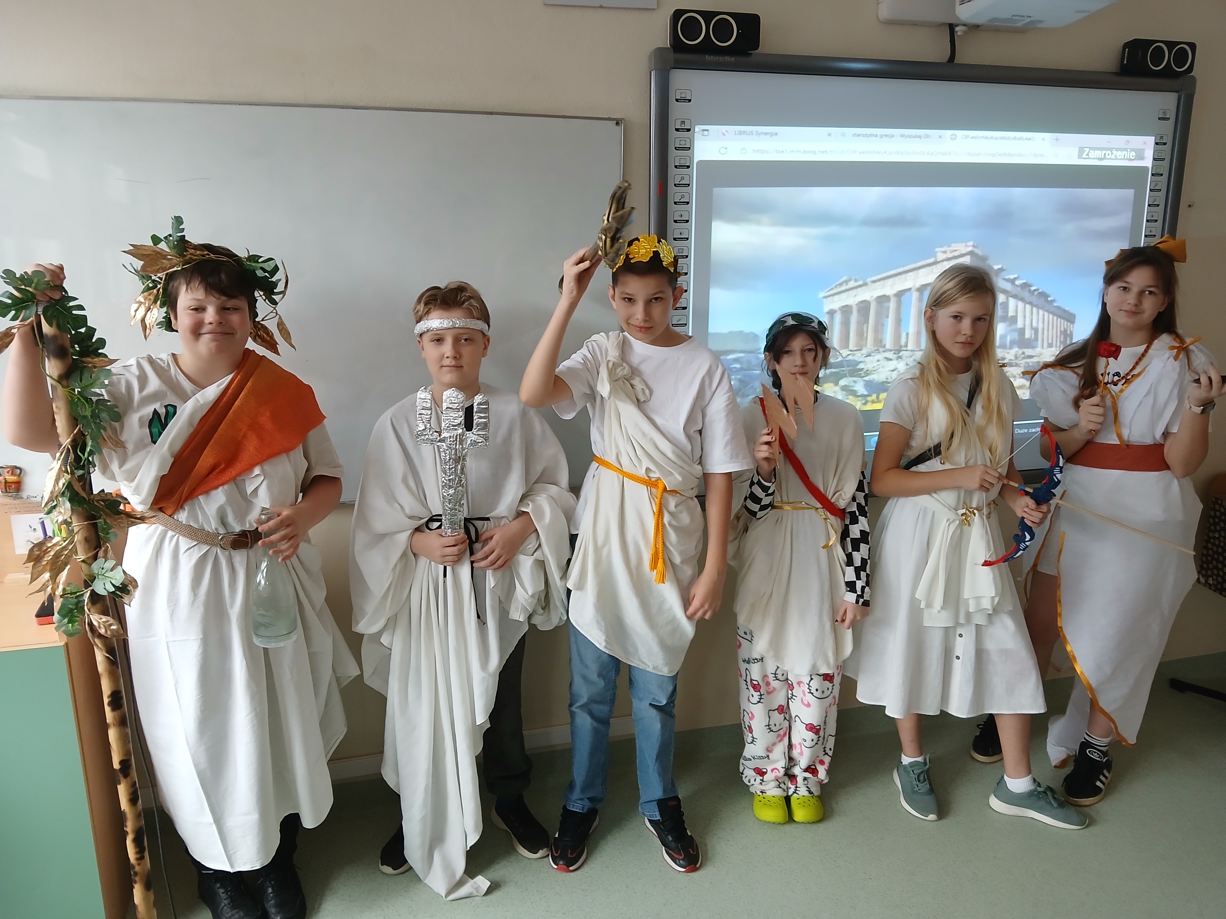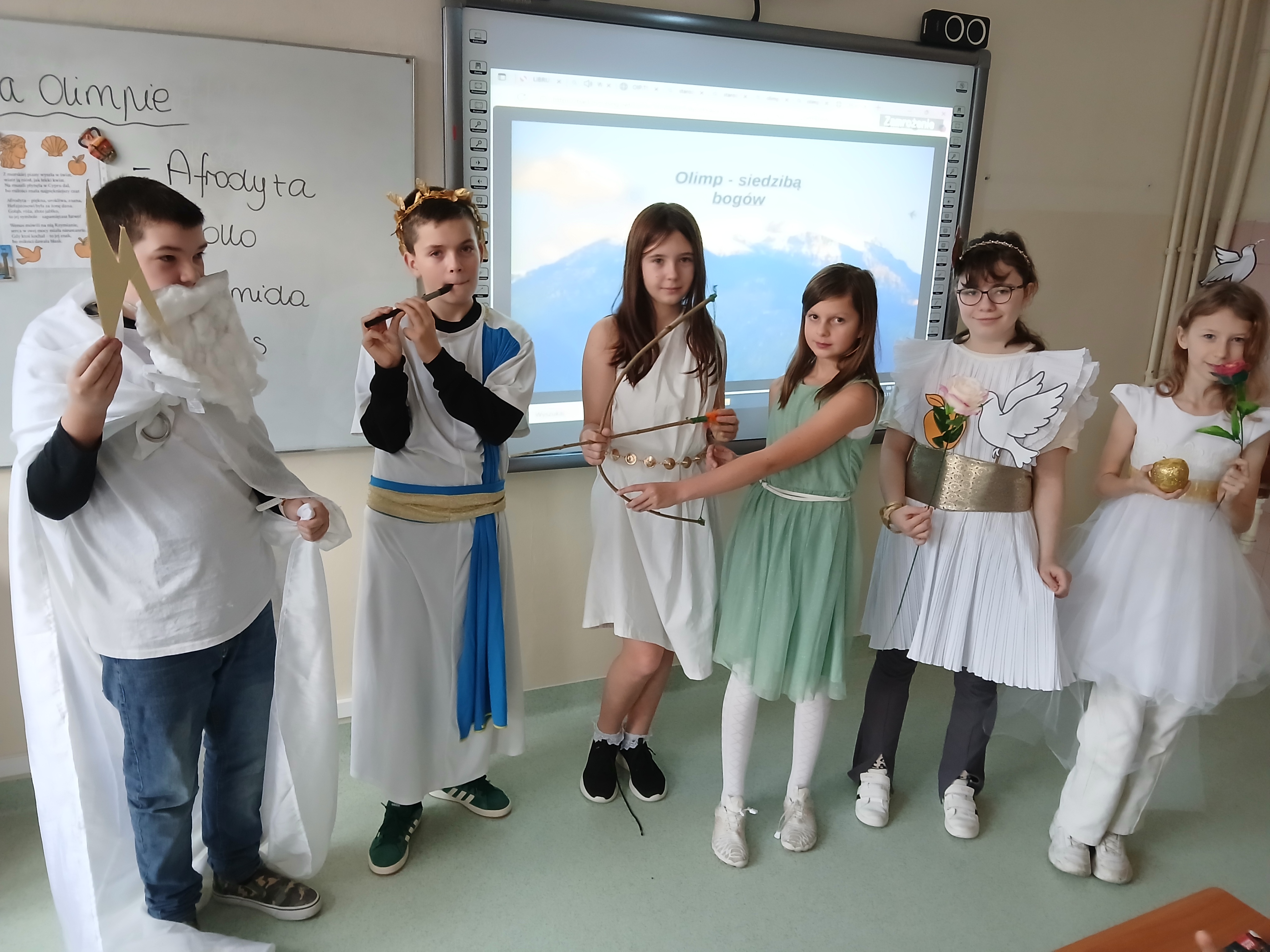 W klasach piątych odbyła się wyjątkowa lekcja kulturowo-literacka pod hasłem „Na Olimpie”, której celem było przybliżenie uczniom postaci greckich bogów i bogiń oraz utrwalenie wiadomości dotyczących mitologii.
