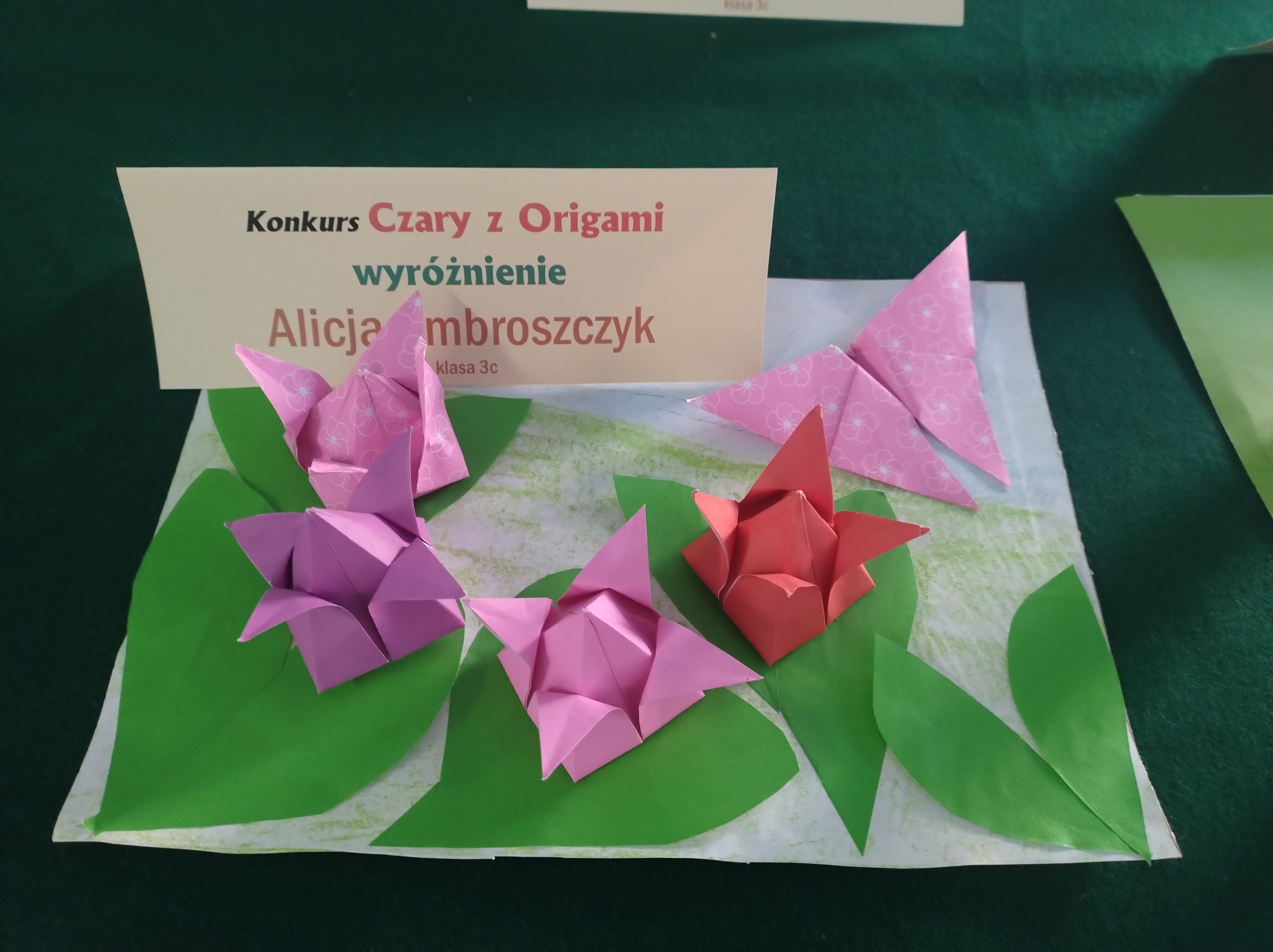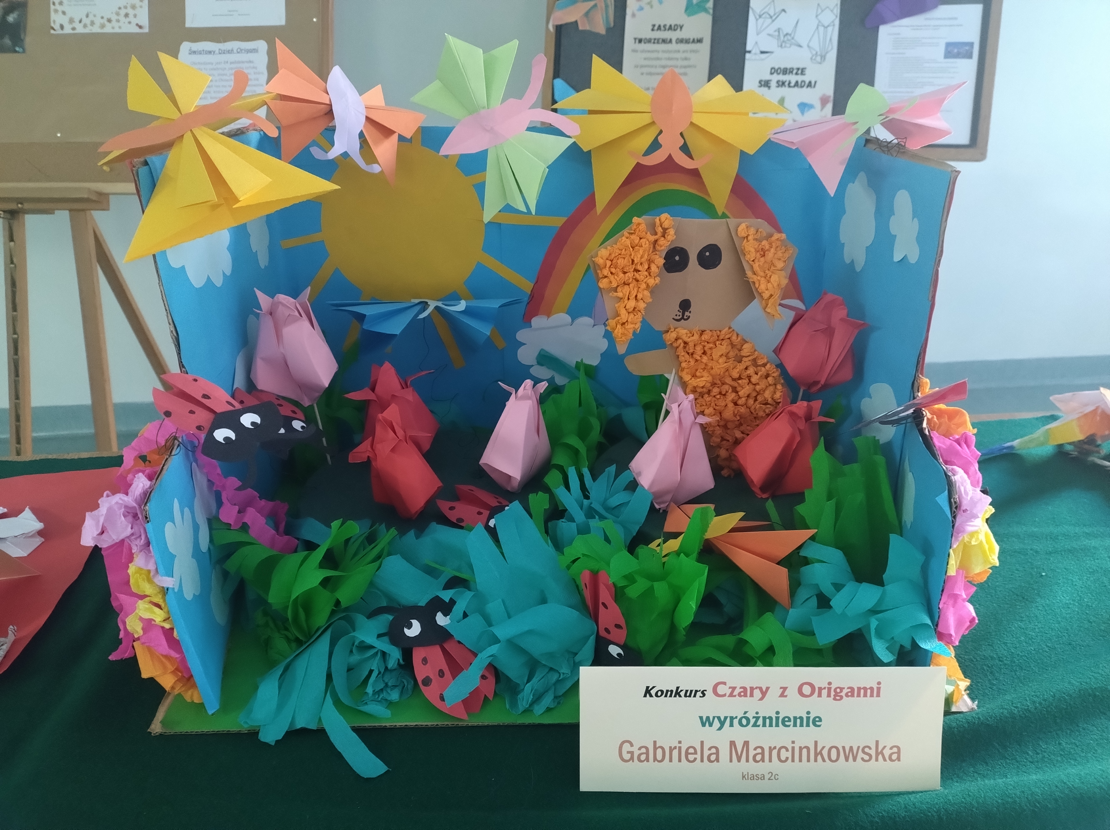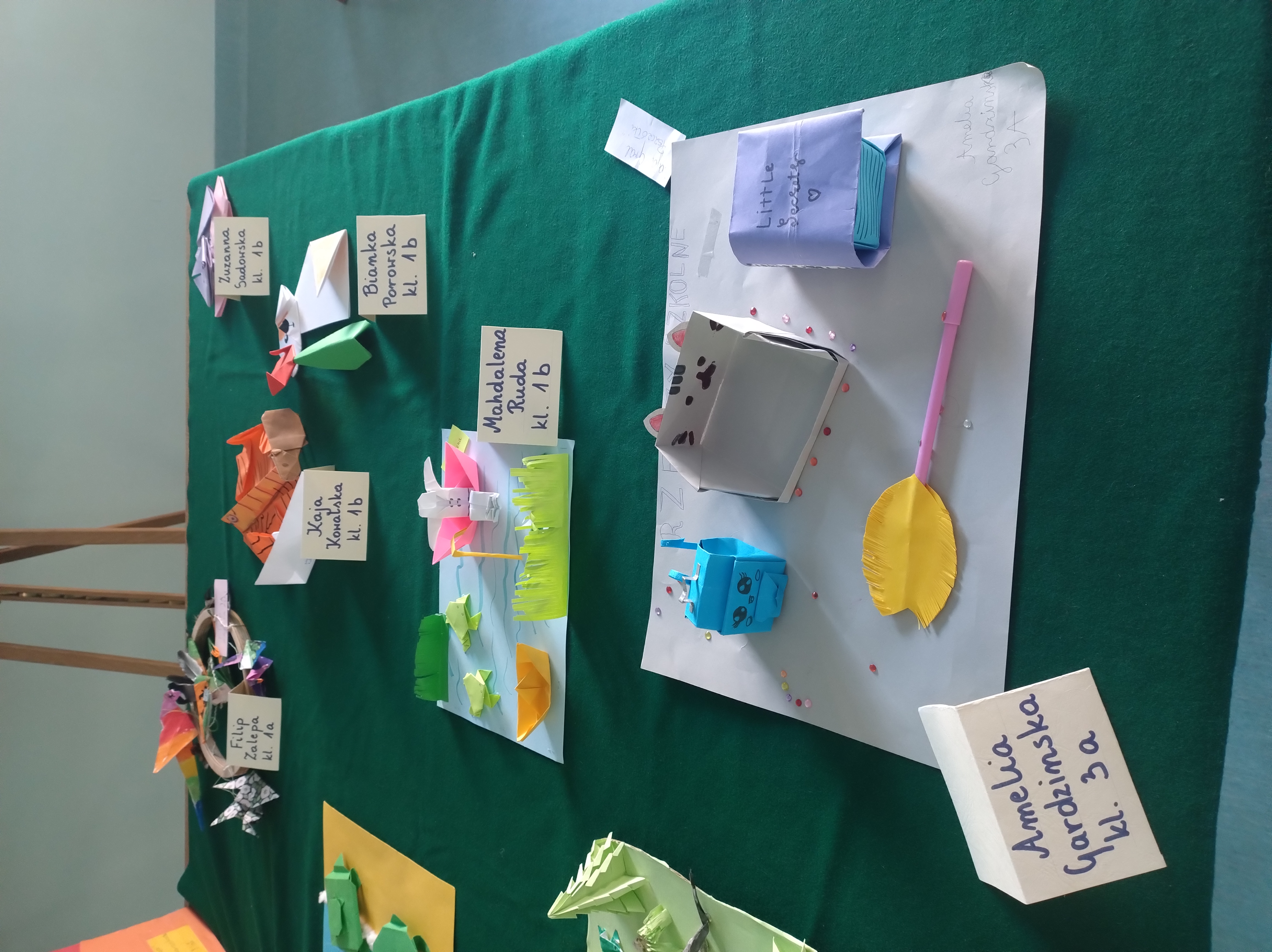 W związku z obchodami Światowego Dnia Origami, w naszej szkole został zorganizowany konkurs "Czary z Origami" dla klas 1-3. Uczniowie podjęli wyzwanie zmierzenia się z wykonaniem prac trudną sztuką składania papieru. Rozwijając wyobraźnię, ćwicząc cierpliwość, dokładność i precyzję stworzyli piękne prace, a komisja konkursowa w składzie p. wicedyr. Iwona Kozak, p. wicedyr. K. Cierkowska - Gendek i p. W. Lewandowska miała trudne zadanie wyłonienia zwycięzców.