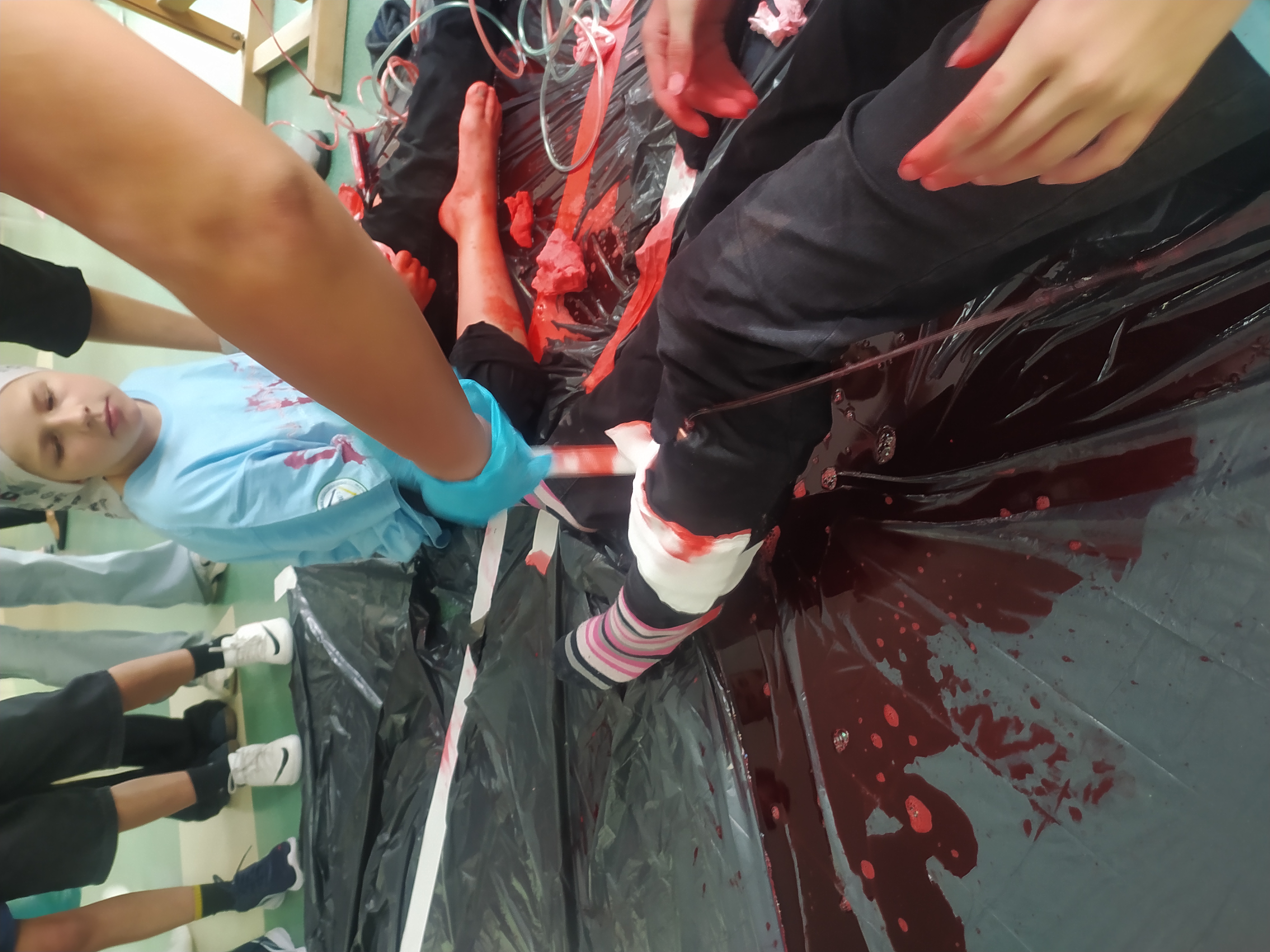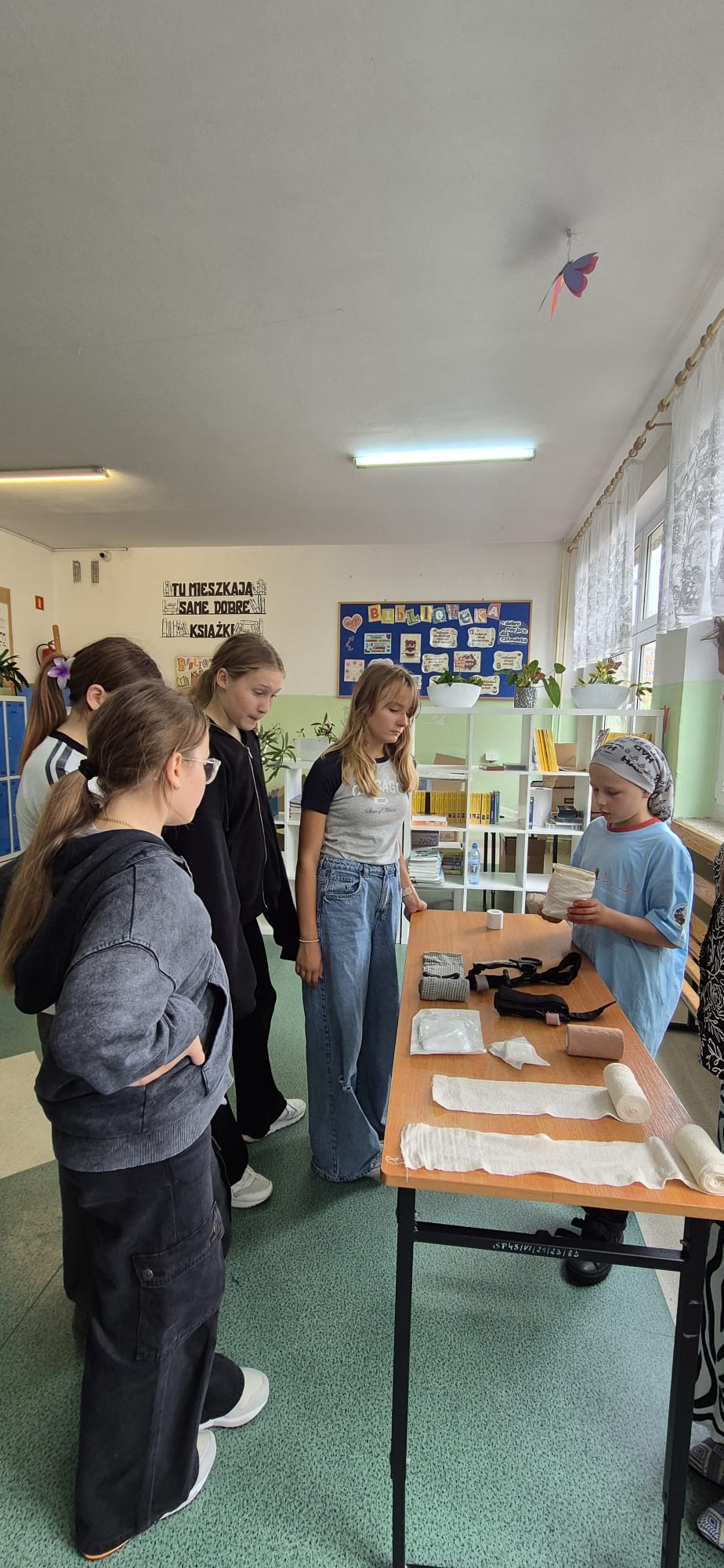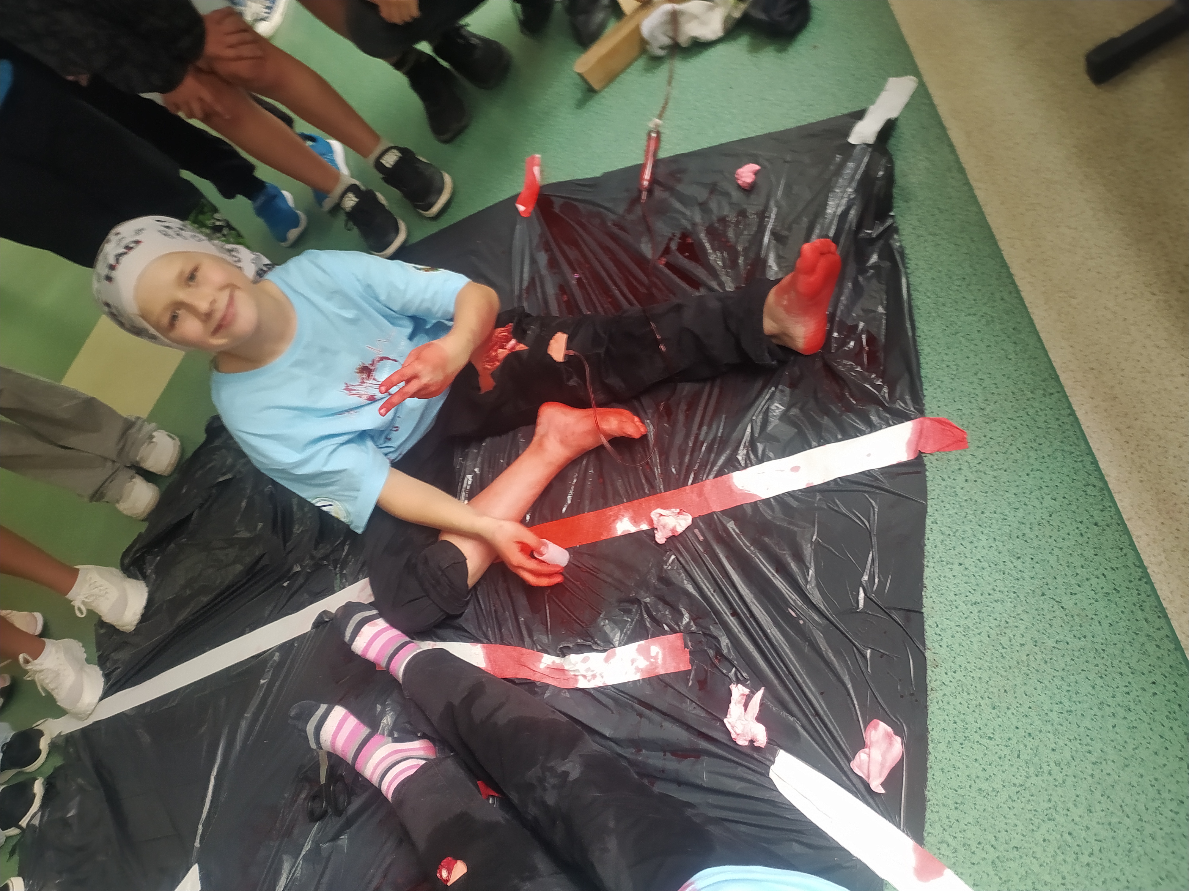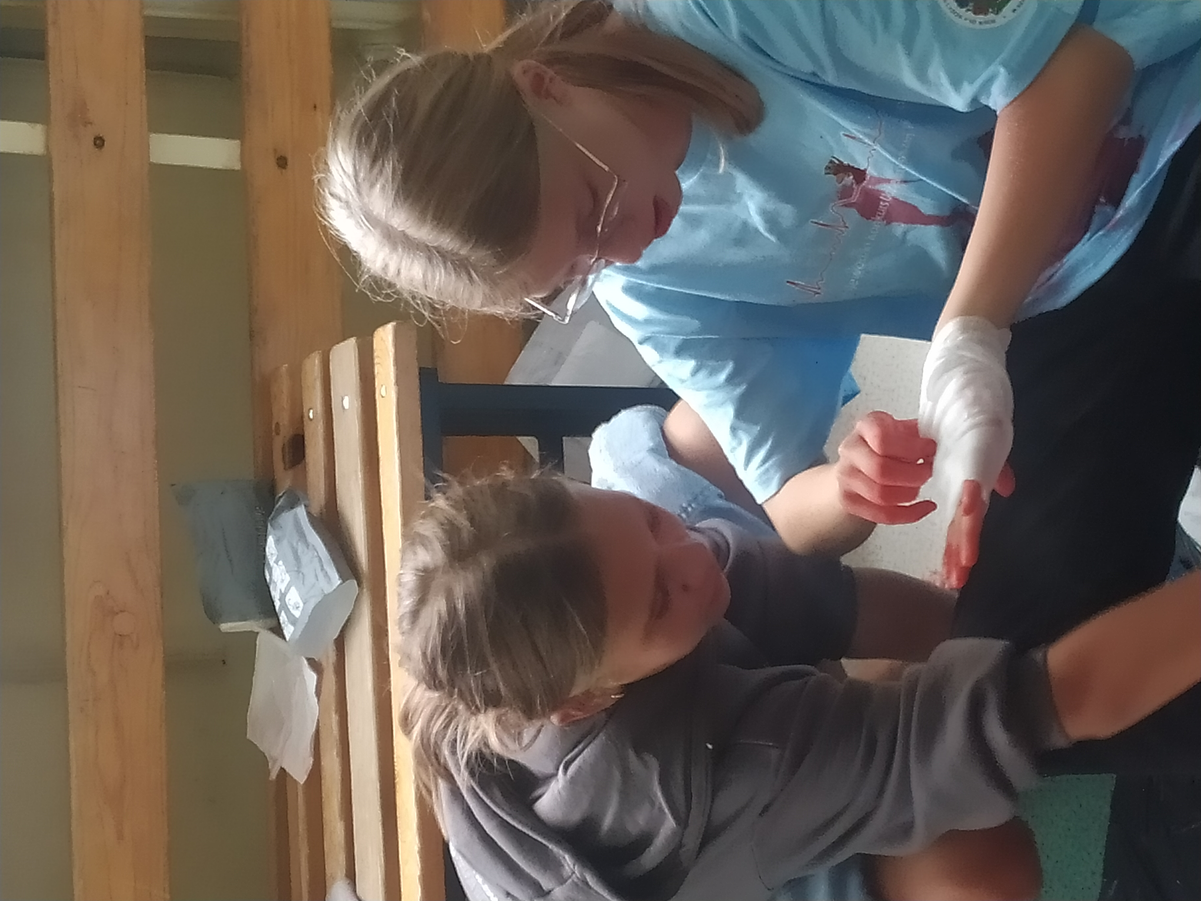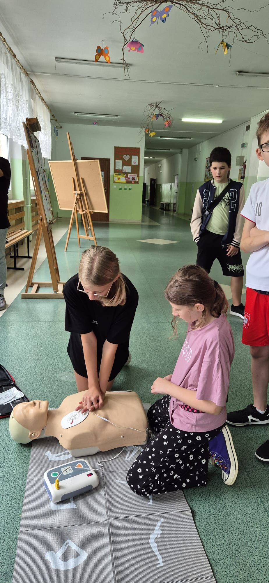 12 września kilkoro uczniów z klas 6b, 7a i 8a chętnie dzieliło się swoją wiedzą i umiejętnościami, za co im serdecznie dziękujemy. Dużym zainteresowaniem cieszyła się między innymi kamizelka do ćwiczeń uciśnięć nadbrzusza przy zadławieniach oraz fantom niemowlaka. Można było również zobaczyć jak obsługiwać defibrylator, a na przerwie o godzinie 13.25 dwoje uczniów odegrało rolę poszkodowanych. Ich „rany” wyglądały poważnie, ale na szczęście w naszej szkole zawsze znajdą się osoby gotowe, by nieść pomoc poszkodowanym. Z zasadami udzielania pierwszej pomocy zapoznali się też uczniowie uczestniczący w zajęciach edukacji zdrowotnej. Mamy nadzieję, że akcja, w której uczestniczyliście wzmocniła w was jeszcze bardziej świadomość potrzeby udzielania pierwszej pomocy.