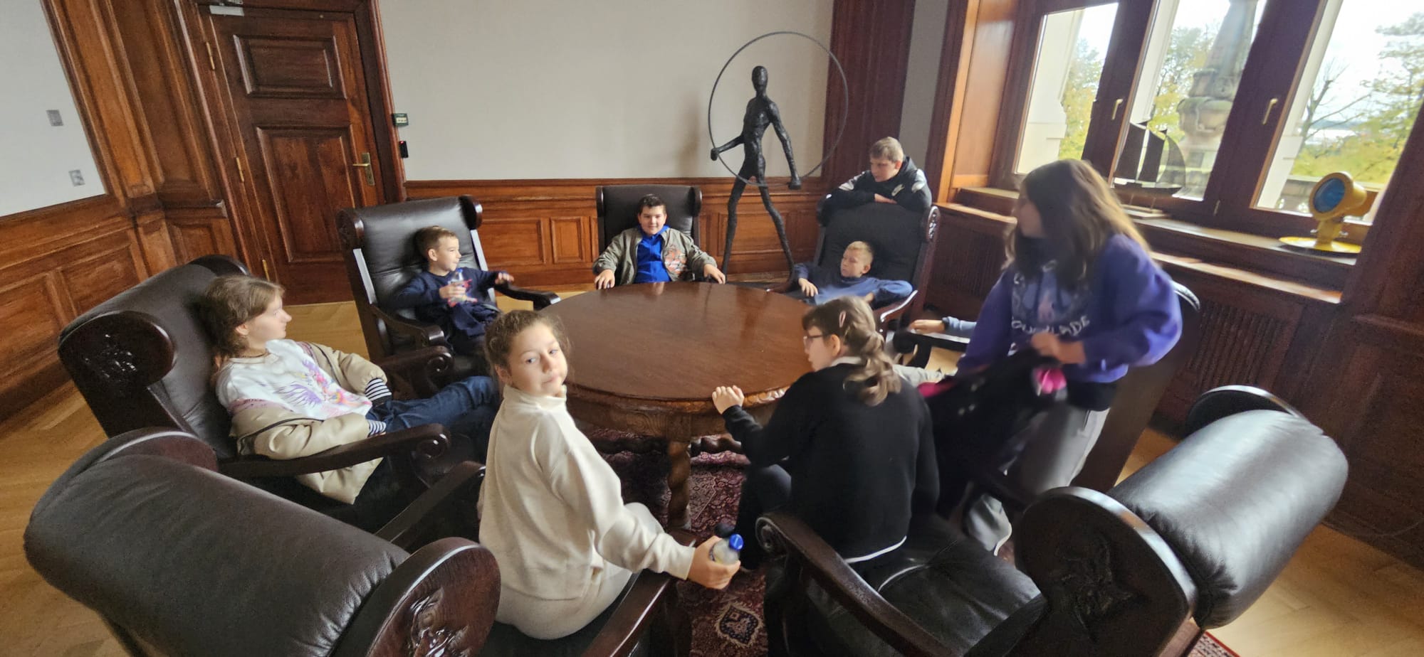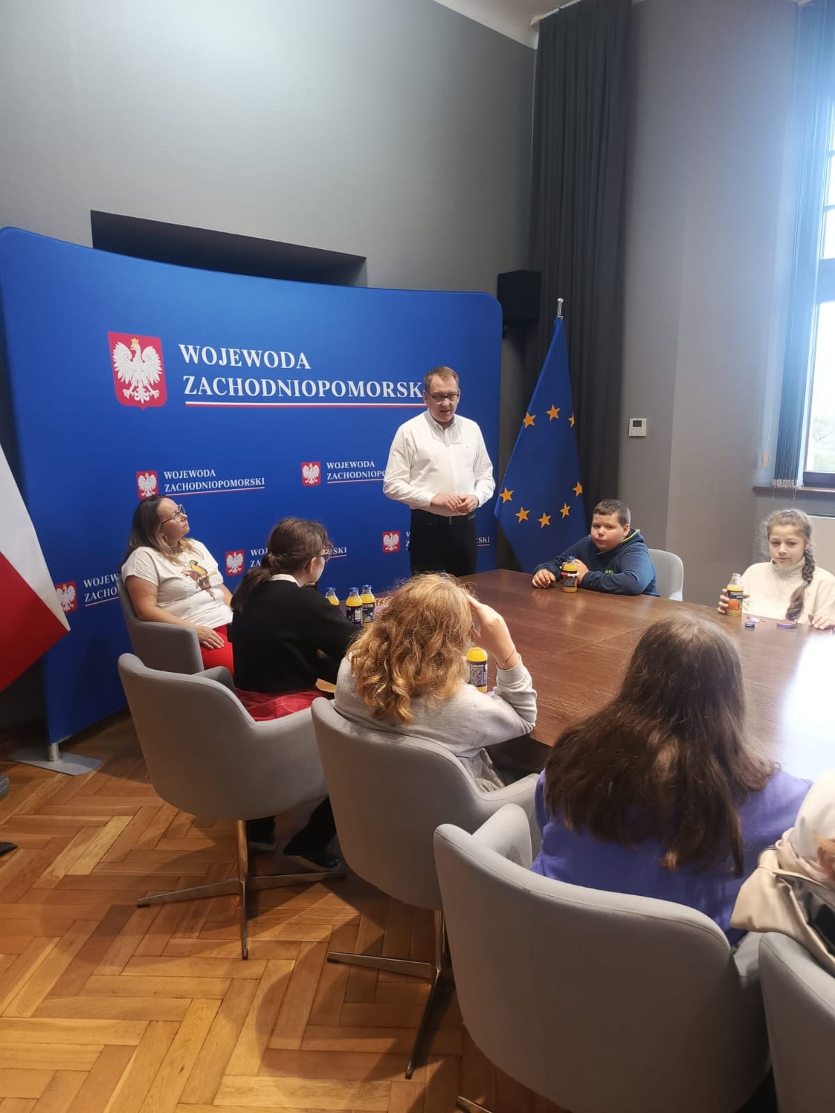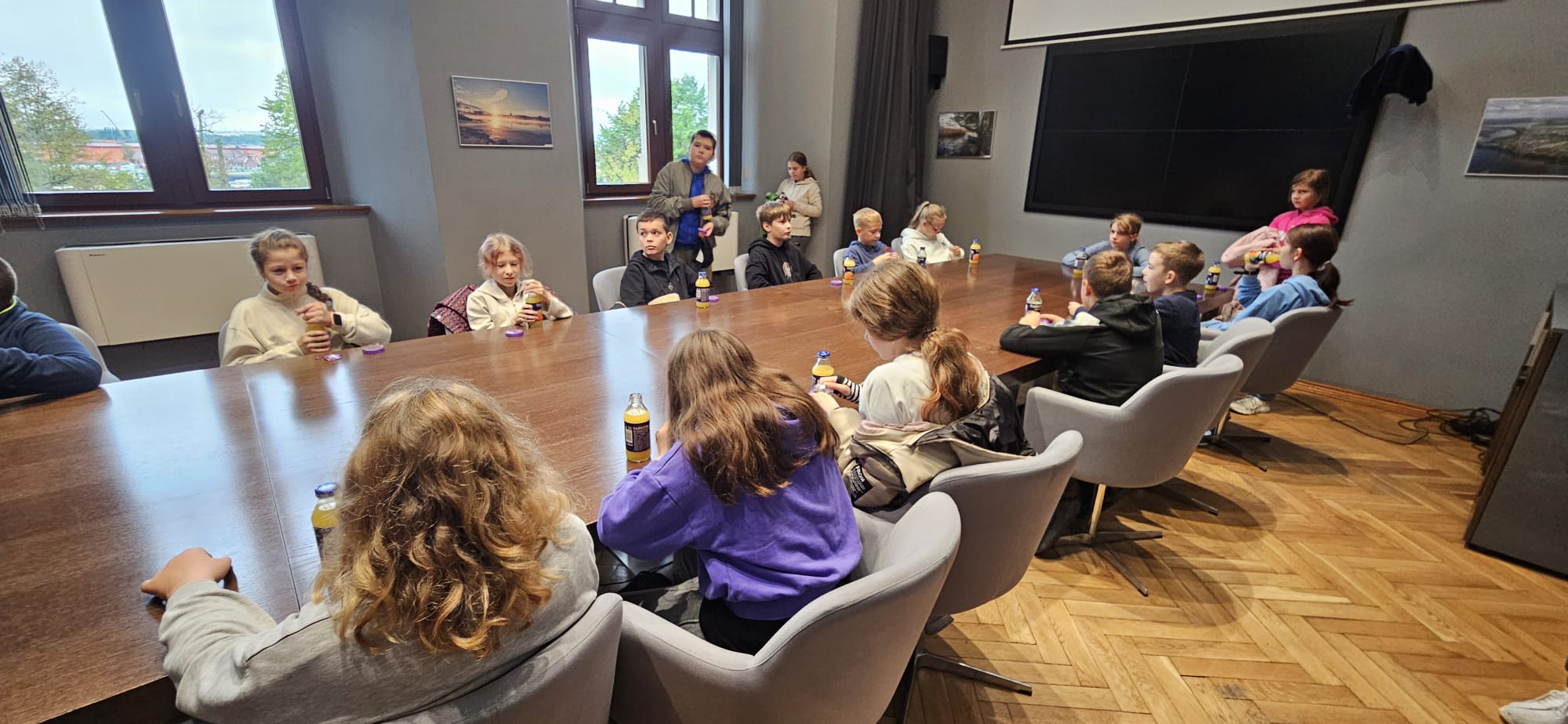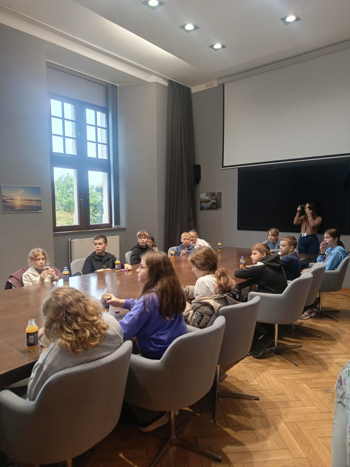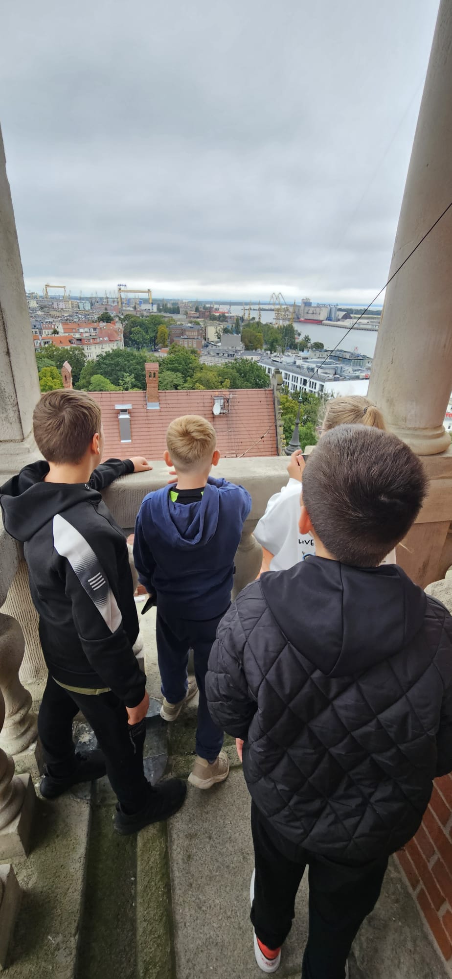 Dnia 18 września 2025 roku uczniowie klasy 5b wraz z nauczycielami wyszli na wycieczkę do Zachodniopomorskiego Urzędu Wojewódzkiego. Uczniowie dowiedzieli się bardzo wiele na temat budowy okazałego gmachu mieszczącego się na Wałach Chrobrego. Pani przewodniczka przybliżyła historię budynku i opowiedziała o tym jakie sprawy mogą w Urzędzie Wojewódzkim załatwić mieszkańcy miasta i województwa.Z okazałej wieży widokowej mogliśmy oglądnąć panoramę naszego pięknego Szczecina, a schodząc do podziemnej części zobaczyliśmy tajemnicze kanały biegnące być może pod korytem rzeki Odry. Spotkała nas też bardzo miła niespodzianka -gościł nas u siebie pan wicewojewoda Dawid Krystek, który opowiedział nam o swojej pracy oraz o pracy współpracowników oraz zaprosił nas na kolejną wizytę.