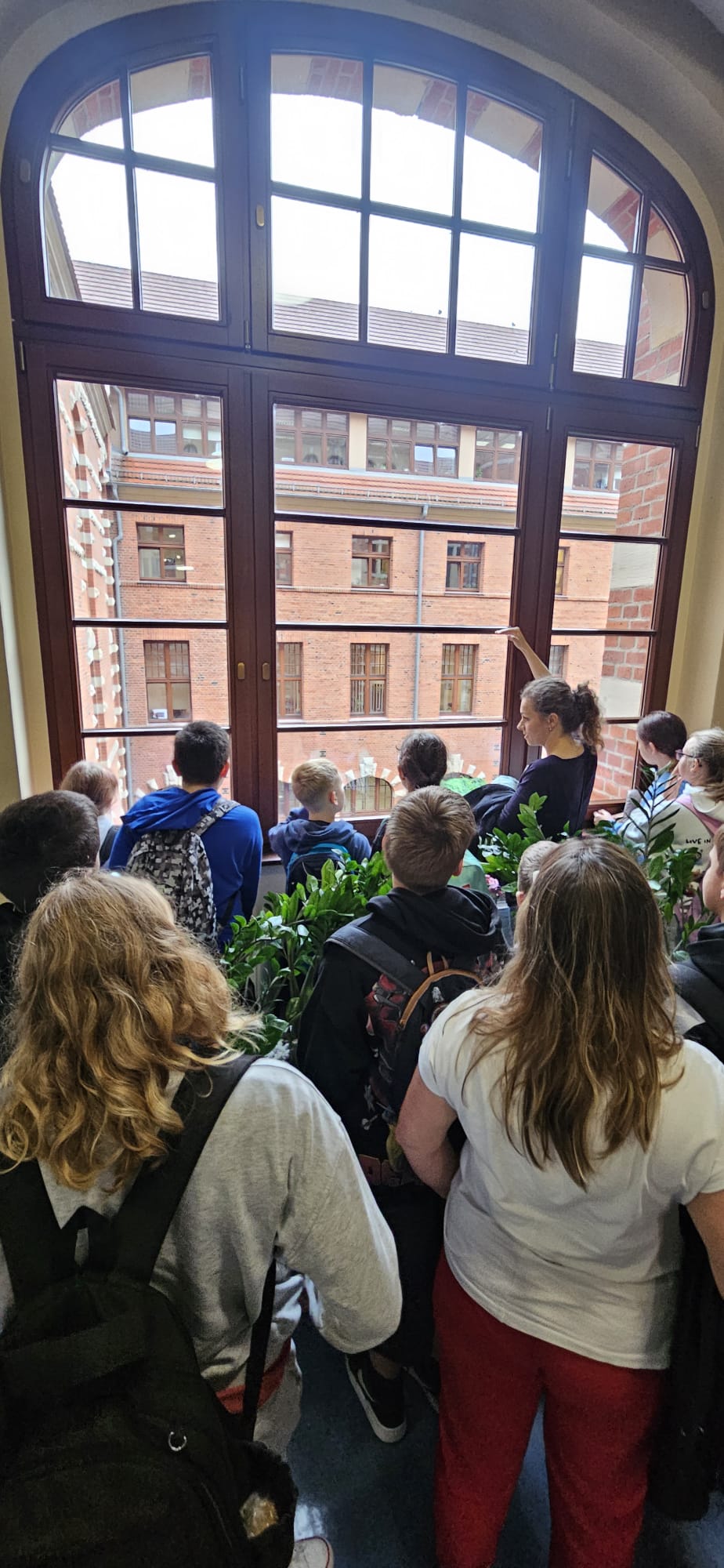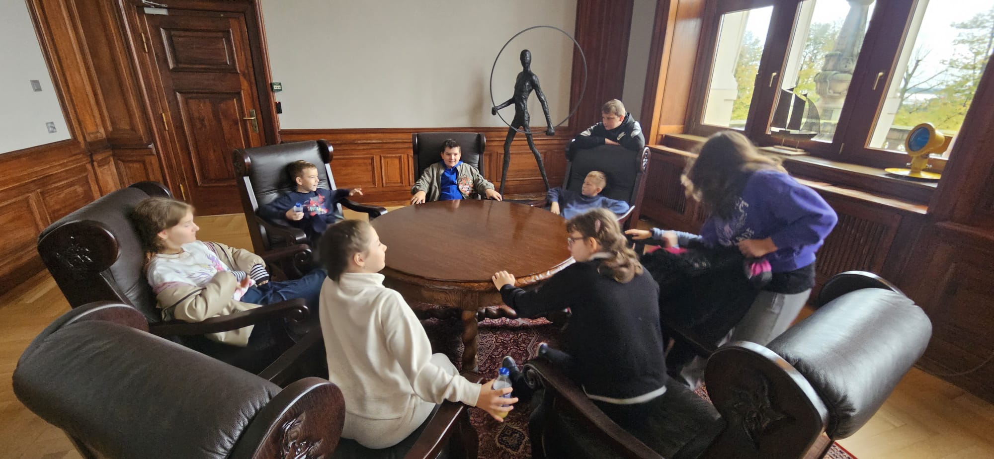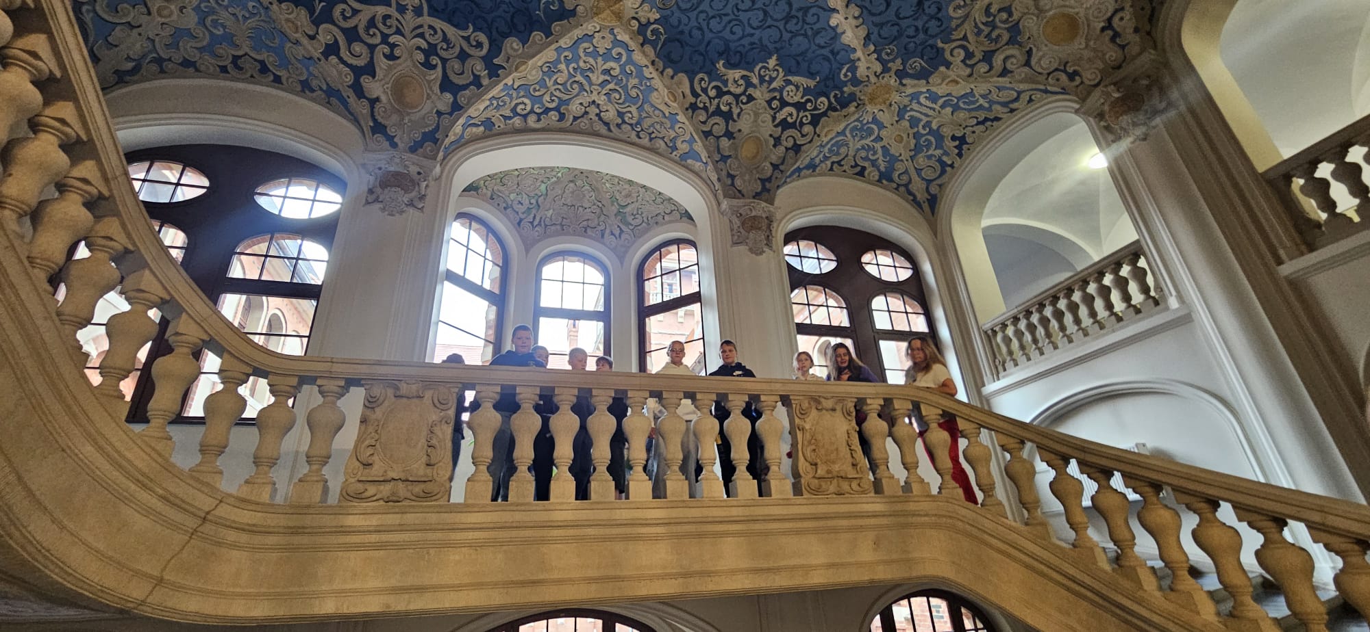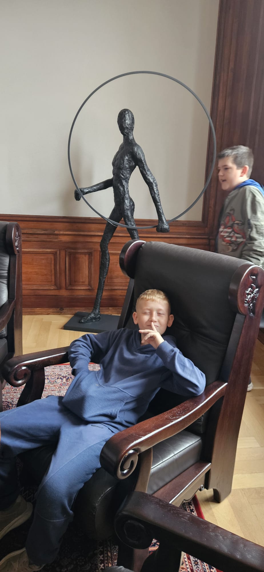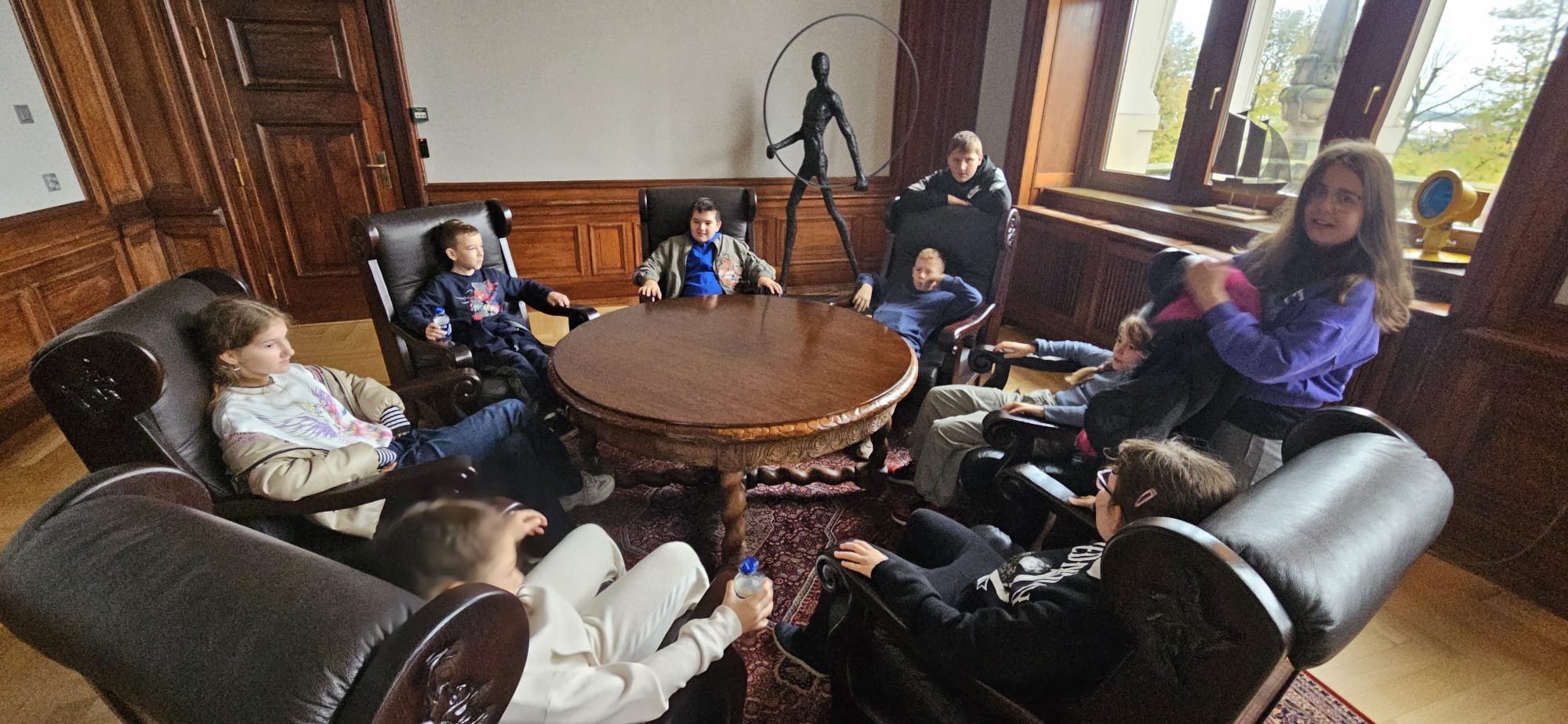 Dnia 18 września 2025 roku uczniowie klasy 5b wraz z nauczycielami wyszli na wycieczkę do Zachodniopomorskiego Urzędu Wojewódzkiego. Uczniowie dowiedzieli się bardzo wiele na temat budowy okazałego gmachu mieszczącego się na Wałach Chrobrego. Pani przewodniczka przybliżyła historię budynku i opowiedziała o tym jakie sprawy mogą w Urzędzie Wojewódzkim załatwić mieszkańcy miasta i województwa.Z okazałej wieży widokowej mogliśmy oglądnąć panoramę naszego pięknego Szczecina, a schodząc do podziemnej części zobaczyliśmy tajemnicze kanały biegnące być może pod korytem rzeki Odry. Spotkała nas też bardzo miła niespodzianka -gościł nas u siebie pan wicewojewoda Dawid Krystek, który opowiedział nam o swojej pracy oraz o pracy współpracowników oraz zaprosił nas na kolejną wizytę.