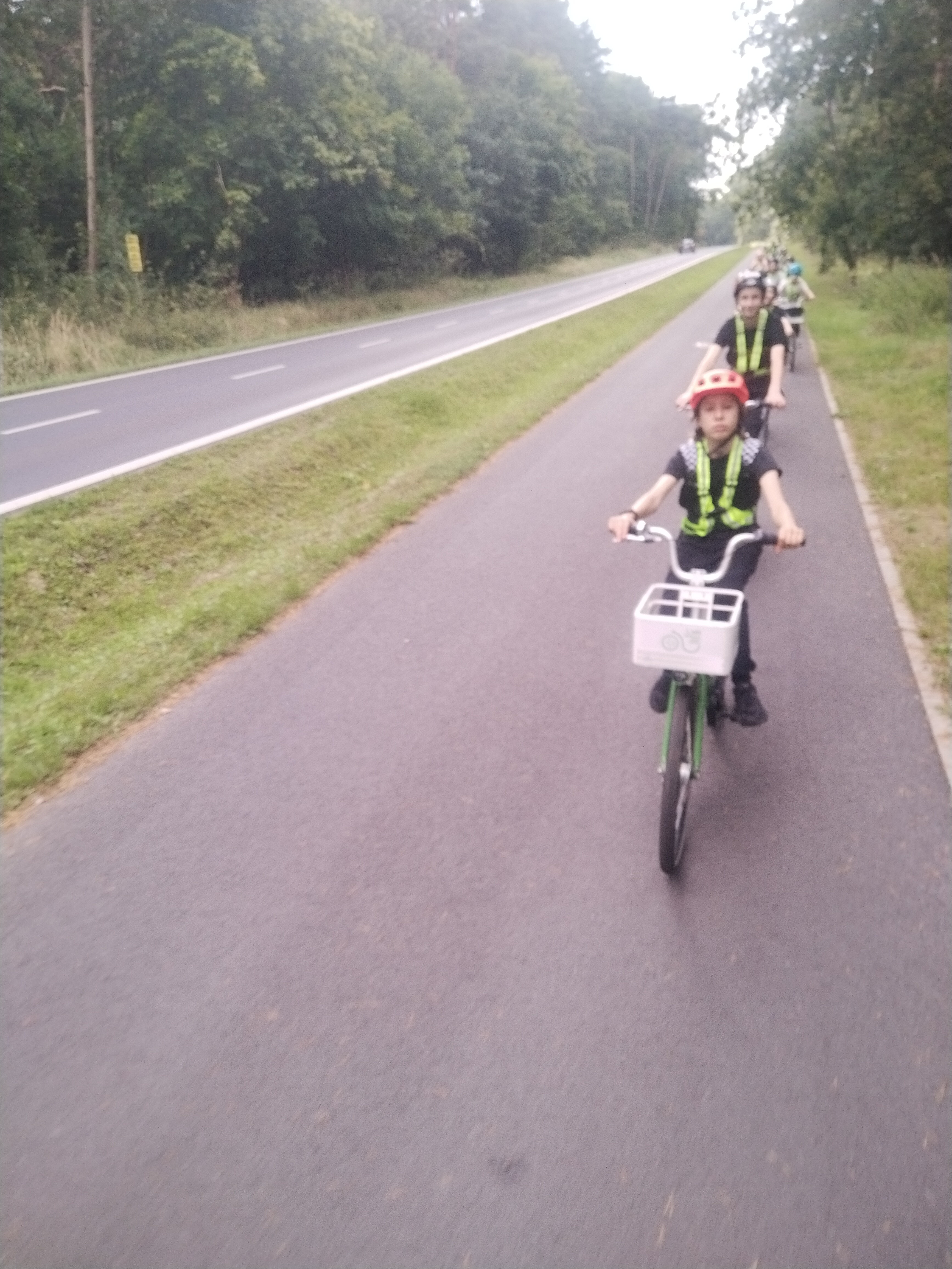 Po krótkiej instrukcji obsługi i sprawdzeniu kasków, peleton uczniów wraz z nauczycielami wyruszył w stronę Jeziora Głębokiego.